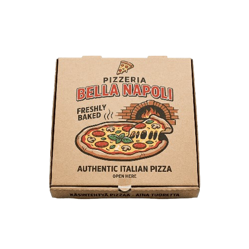 Hanki ravintolaasi tai pop up -pizzeriaasi tyylikkäät pizzalaatikot omalla logolla. Yhteistyökumppanimme käyttää modernia printtaustekniikkaa, joka mahdollistaa yksityiskohtaiset painatukset.