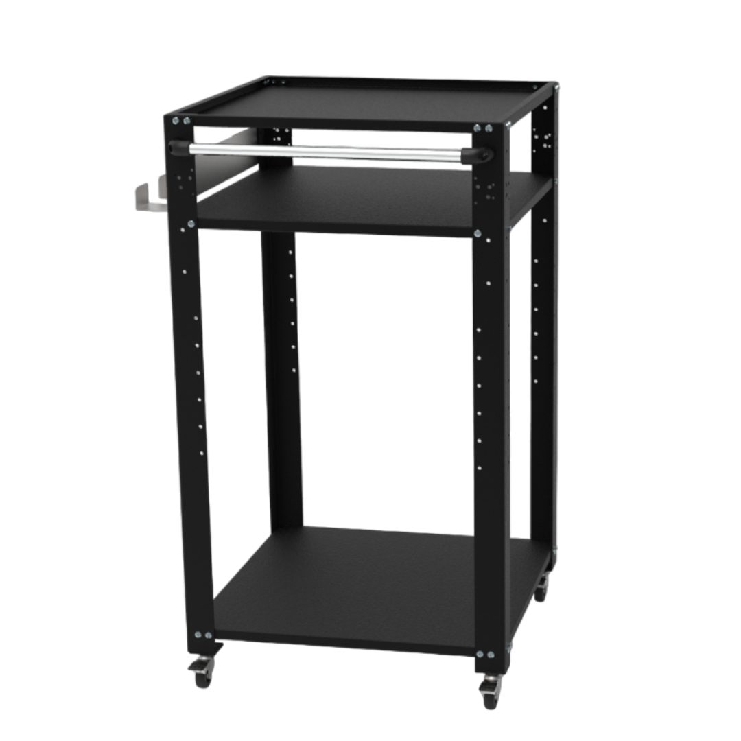 Pizzauunin pöytä on valmistettu FE-360-B -jauhemaalatusta teräksestä, joka on suunniteltu ulkokäyttöön. Se on saatavana mustana ja antrasiitin harmaana. Kärryssä on tukevat 30/10 paksuiset jalat sekä muut osat 15/10 paksuudella. Varustettu 50 mm halkaisijaltaan olevilla valkoisilla kumisilla kääntyvillä pyörillä, joissa on jarrut, ja se kestää enintään 90 kg kuorman. Soveltuu pizzauunille, taikinasekoittimelle ja kaasupullolle.